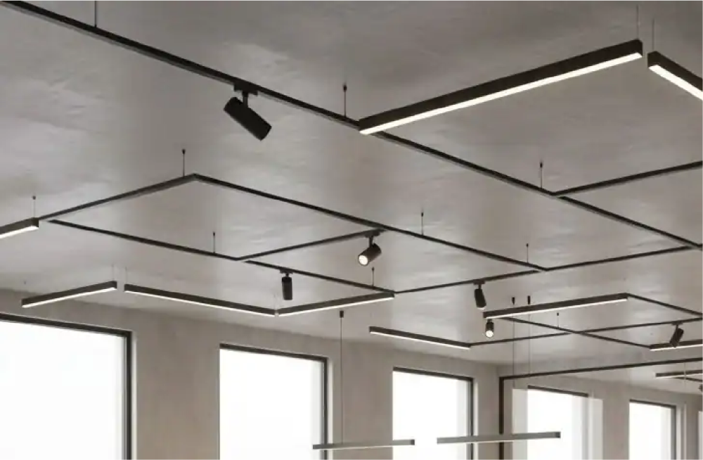 Focus Point Offices implements a modern and flexible lighting solution using ceiling-mounted and track-mounted spotlights to enhance visual hierarchy and workspace functionality. Adjustable LED spotlights are positioned to illuminate individual workstations, collaborative zones, and meeting areas, providing precise task lighting without causing glare. In open-plan areas, directional spotlights highlight architectural features, branding elements, and decorative walls, creating a dynamic and engaging environment. Corridors and reception areas are softly accentuated with angled spotlights to guide circulation while emphasizing textures and design details. The meeting rooms incorporate spotlights with tunable white LEDs, allowing color temperature adjustments to support focus during presentations or relaxation during breaks. All fixtures use high-efficiency LEDs with precise beam control and dimming capabilities, ensuring energy savings while maintaining visual comfort. The overall lighting design delivers a contemporary, adaptable, and professional office atmosphere that balances productivity, aesthetics, and flexibility.